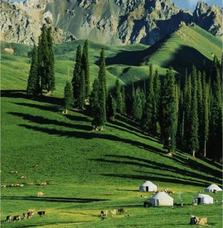 新疆,早晚溫差較大,達(dá)到10至15度左右,另外有些情況,如天池過夜、遊南山牧場、登一號冰川、遊喀納斯